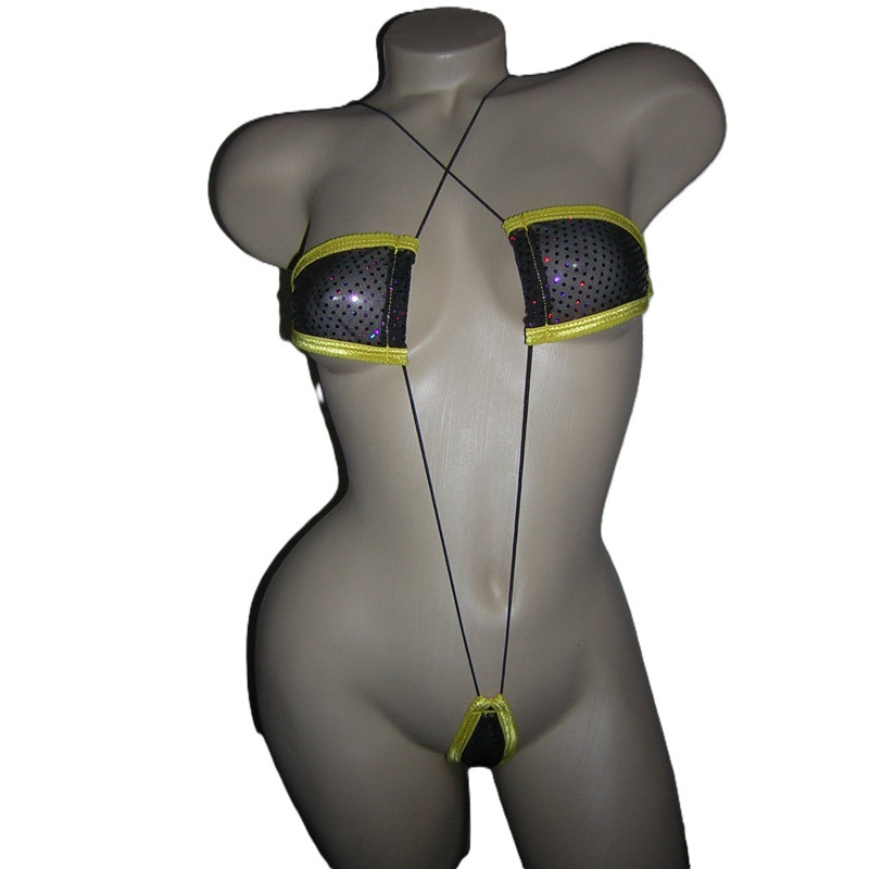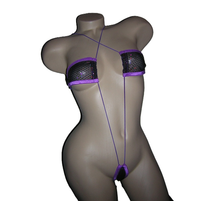 Sexy one-piece czebra exotic dancer monokini maya slingshot. Features a triangle top connected..