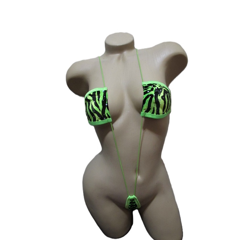 Sexy one-piece zebra exotic dancer monokini maya slingshot. Features a triangle top connected ..