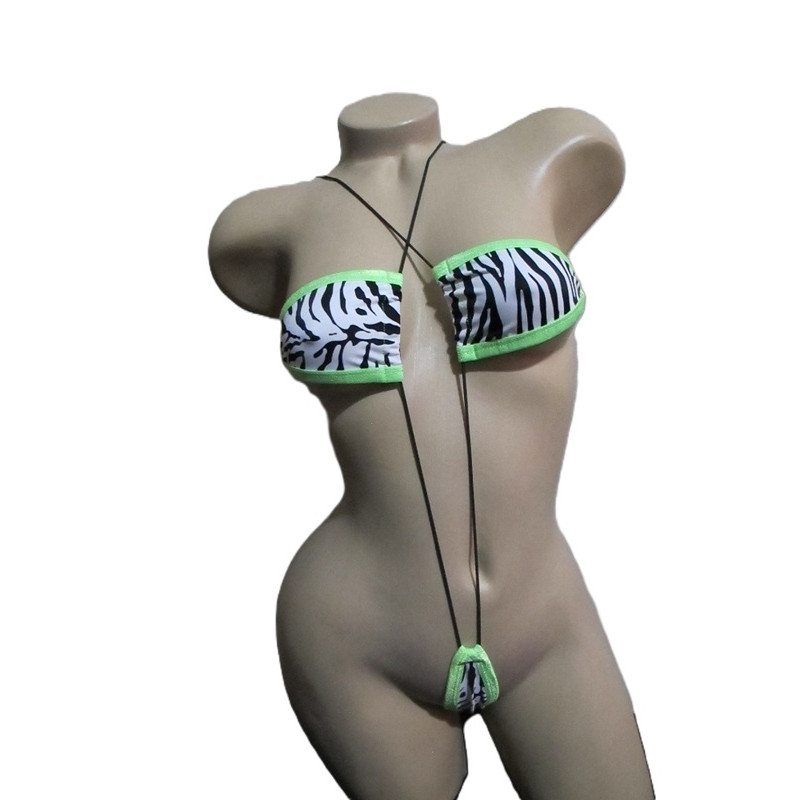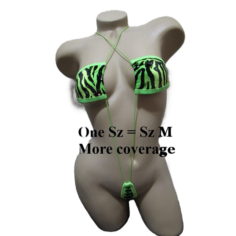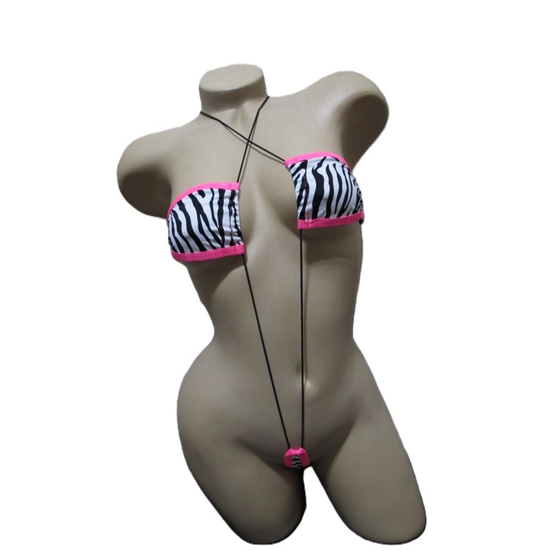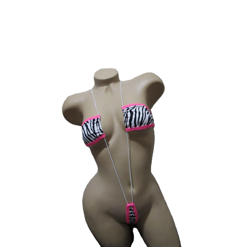 Sexy one-piece czebra exotic dancer monokini maya slingshot. Features a triangle top connected..